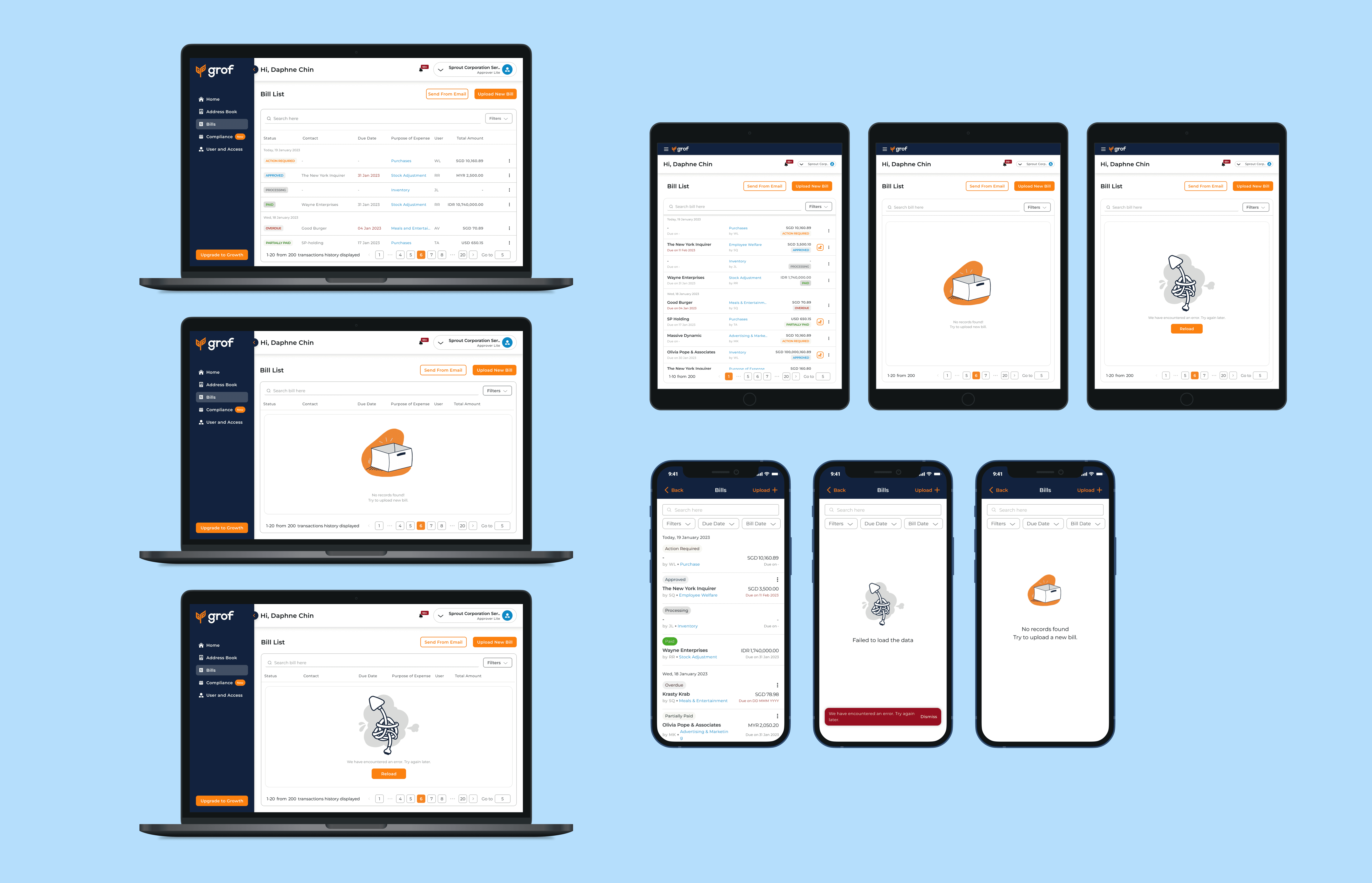 Created a bill list table with clear upcoming due dates to help companies monitor upcoming bills and avoid late payments.