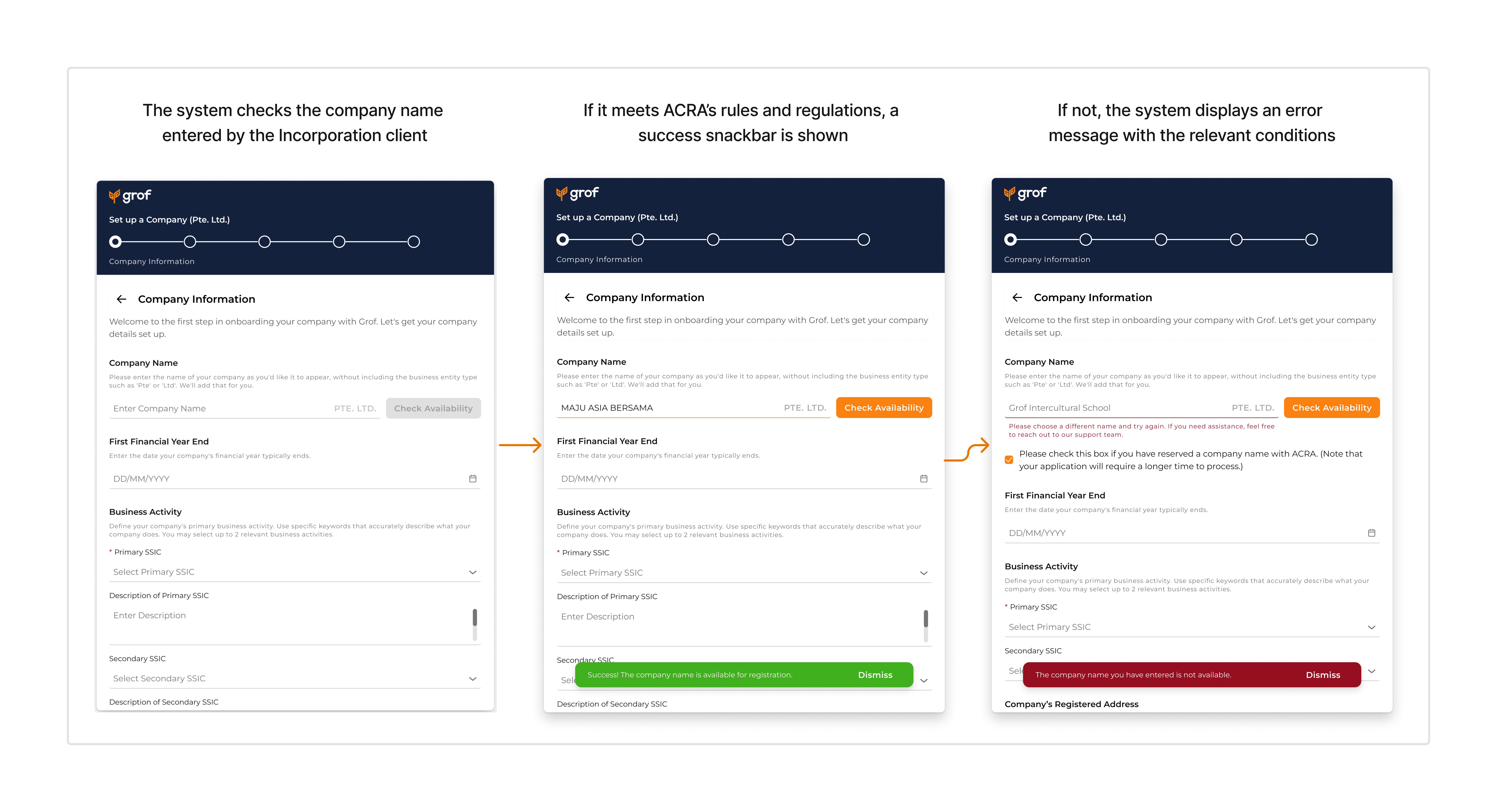 Otherwise, Incorporation clients have to provide their company information. We are also going to check the availability of the company name.