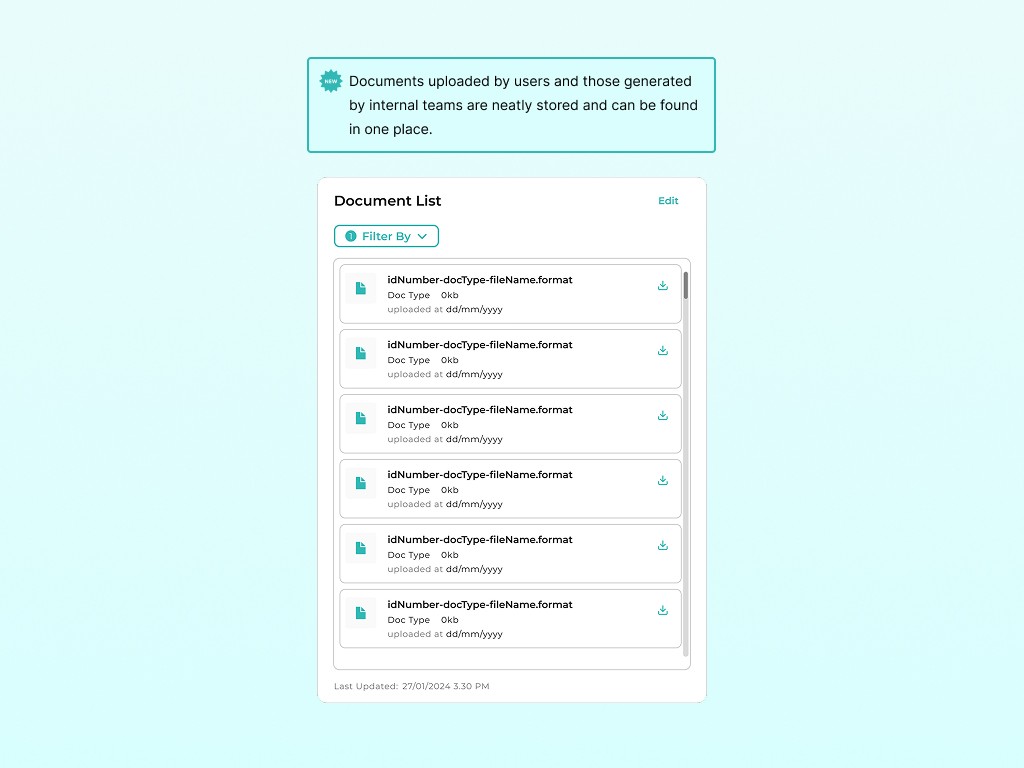 On the internal side, we implemented a Corp Sec Status dropdown, allowing our service team to update each client’s progress in real-time. These updates are automatically reflected on the user side, ensuring alignment and transparency.