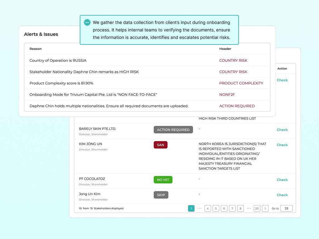 Image: New feature where compliance teams can check the screening result of stakeholder and company