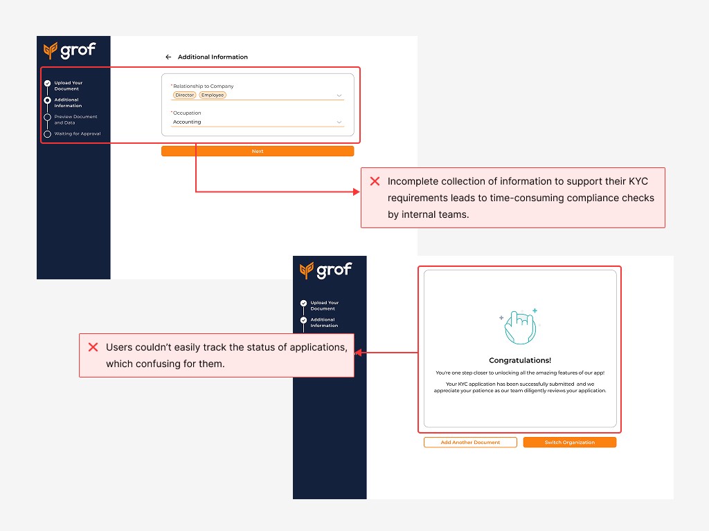Grof rolled out a new onboarding system for both new and existing clients. So far, 500+ companies and their stakeholders have successfully completed onboarding through the new system.